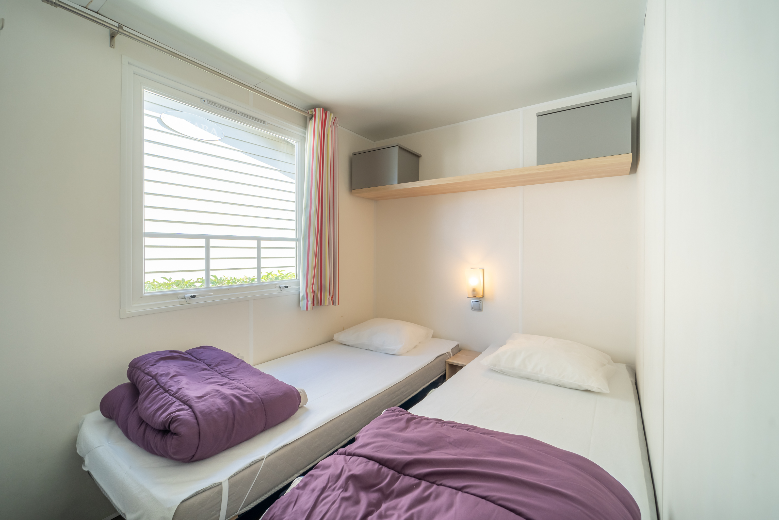 The 3-bedroom Comfort Cottage is designed to offer you a vacation in complete simplicity and comfort. With an area of 30 m², it can accommodate up to 6 people. It has one bedroom with double bed, two bedrooms with single beds and an equipped kitchen with living room. Take advantage of the outdoor terrace for moments of relaxation in the open air. This cottage combines comfort, functionality and conviviality, for a pleasant stay with family or friends, in the heart of nature.